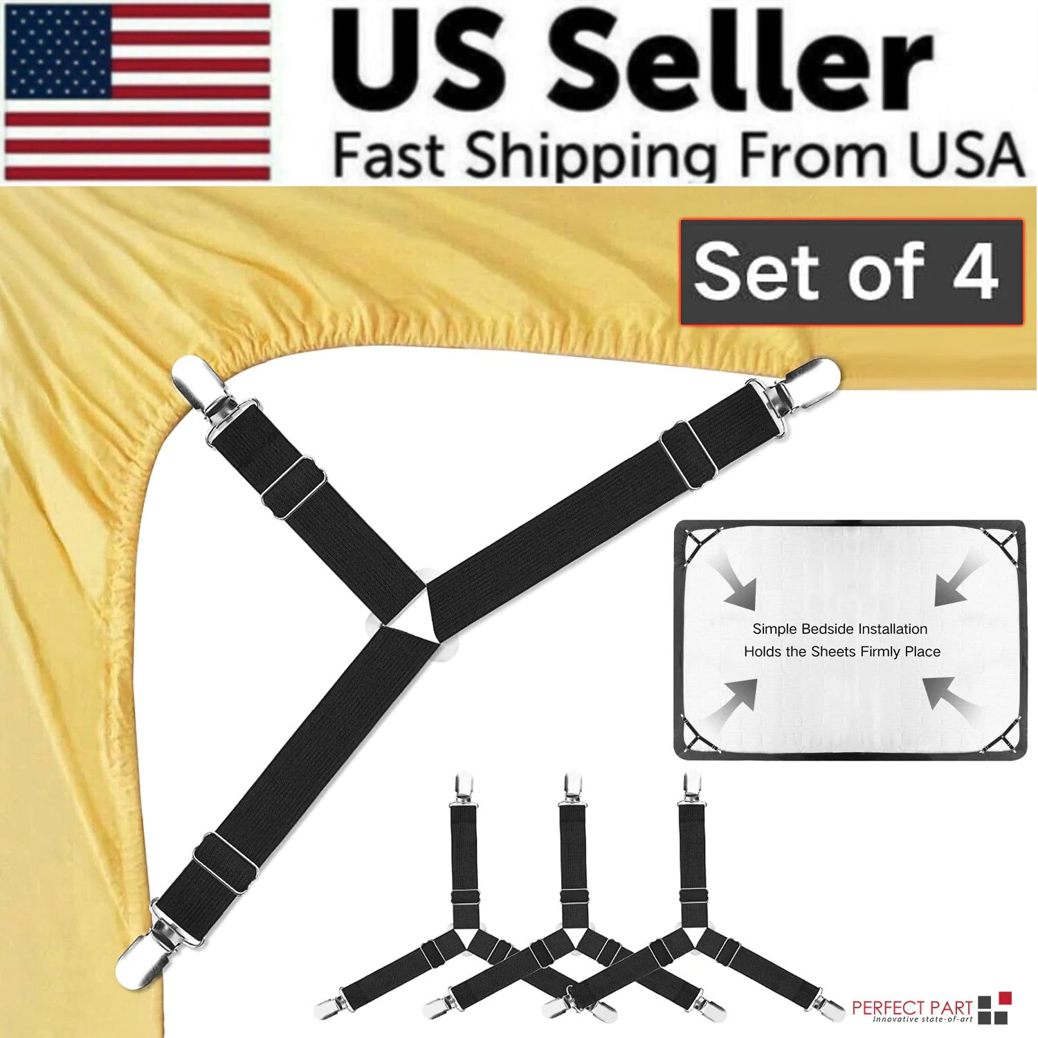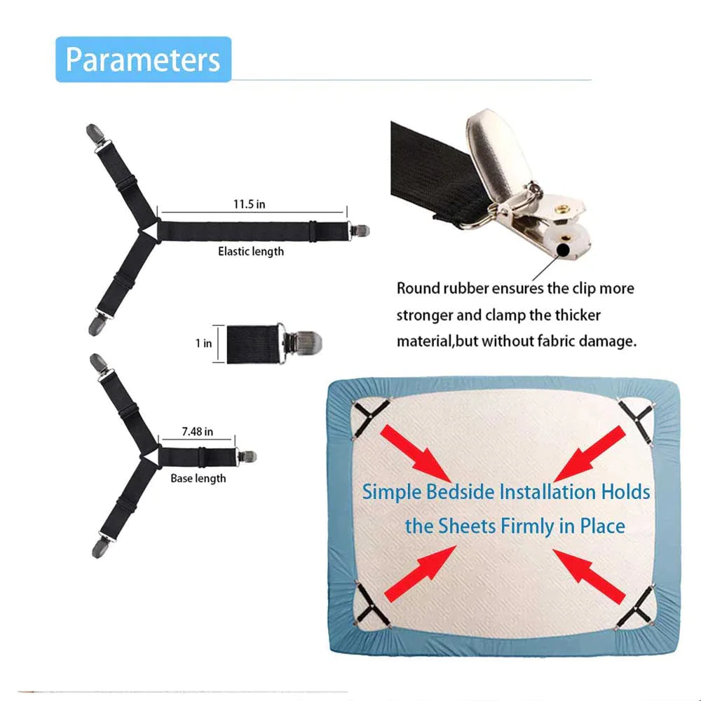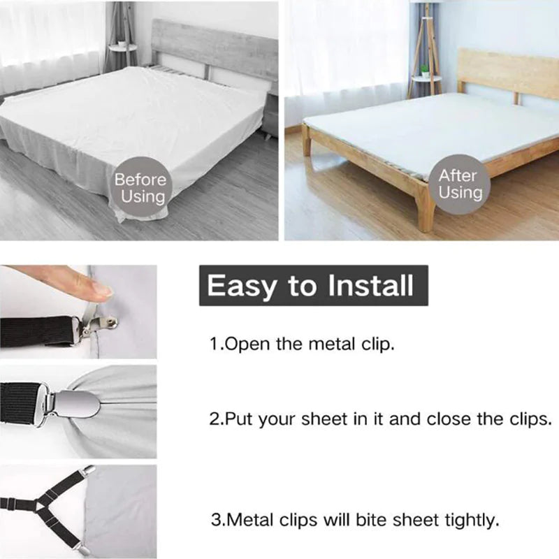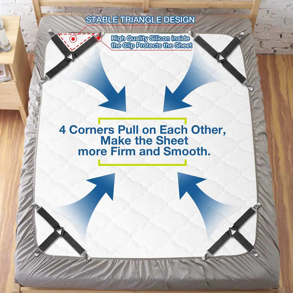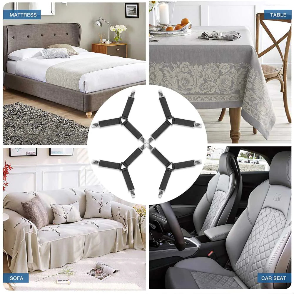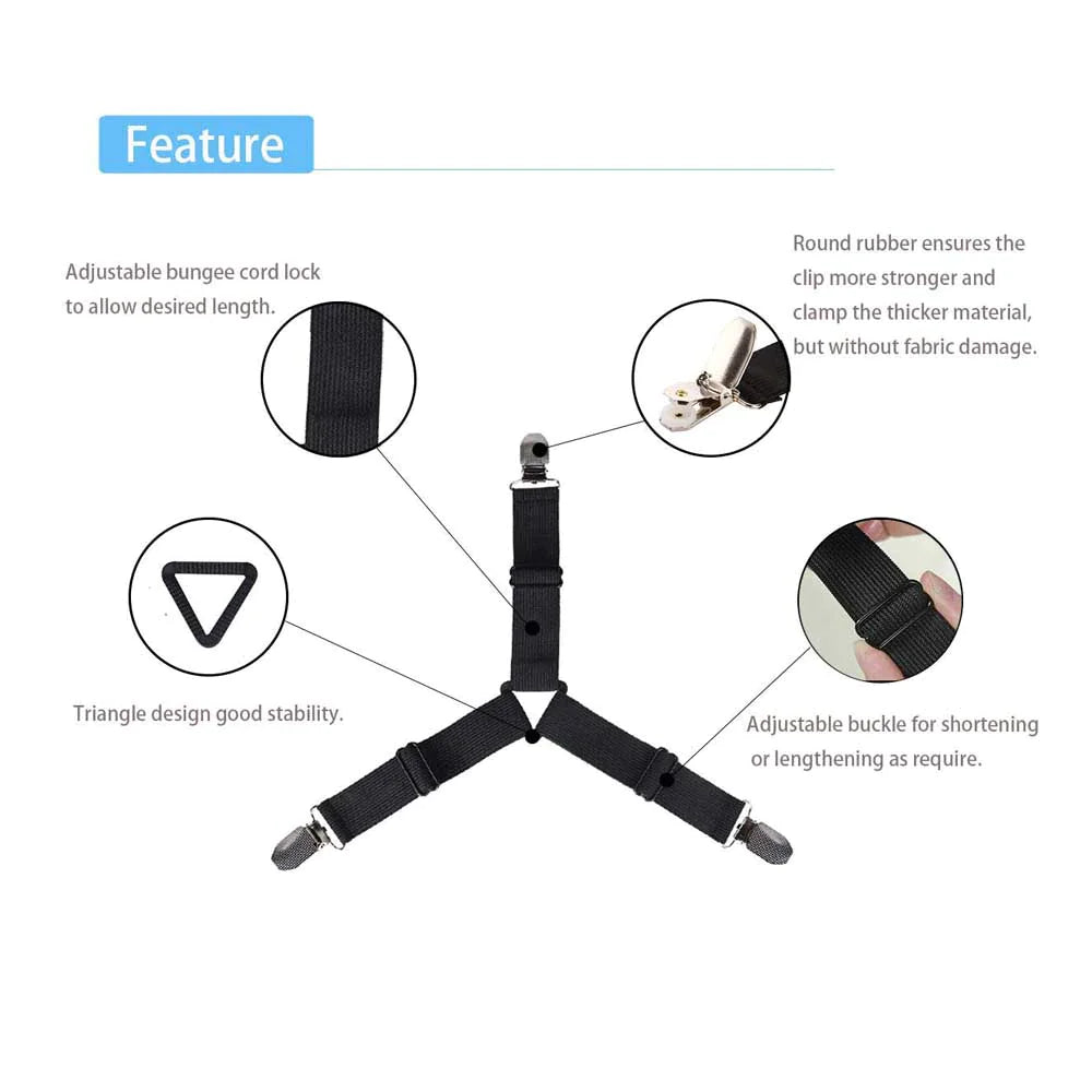 4 Bed Sheet Fasteners Adjustable Elastic Suspenders Straps Mattress Covers Clips