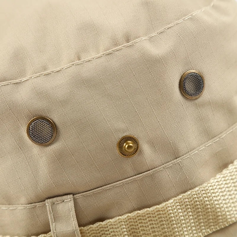 Beat the heat with our Camouflage Bucket Hat crafted from breathable materials that keep you cool and comfortable under the sun. Its wide brim provides ample shade for your face and neck, while the lightweight fabric ensures unrestricted movement, making it ideal for all-day wear during outdoor activities.