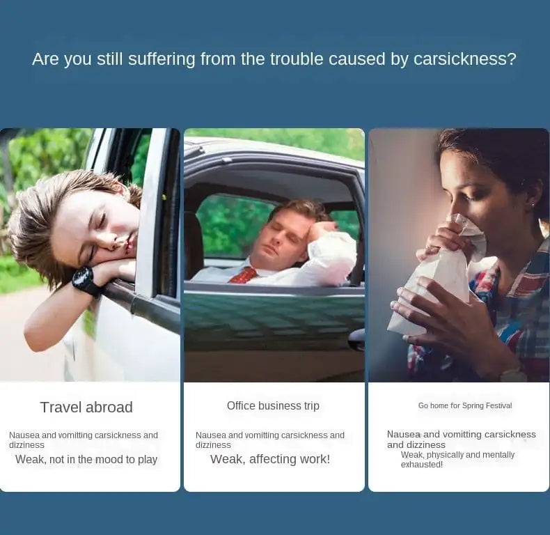 Introducing Car Sickness Glasses - Your Fast, Drug-Free Relief from Motion Sickness! Are you tired of feeling dizzy and nauseous during car rides, flights, or boat trips? Say goodbye to motion sickness with our innovative Car Sickness Glasses! FDA approved and known to be 95% effective, these glasses are the ultimate solution to reducing motion-induced discomfort. Simply wear them for 10 minutes or when you feel symptoms creeping in - the blue liquid inside the frame creates an artificial horizon, synchronizing visual information and cochlear signals to alleviate dizziness. No more vomiting, nausea, or anorexia within minutes! These glasses are comfortable for all head sizes and shapes, suitable for adults and children alike, and can even be worn over regular glasses. Weighing only 35g, they offer a lightweight, pressure-free experience. Safe for all ages, including the elderly, children, and pregnant women, our Car Sickness Glasses are the perfect gift for your loved ones. Plan your sea excursions, cruises, and road trips without fear, and enjoy every journey with confidence. Don't let motion sickness hold you back - trust our award-winning technology, recommended by doctors, and embrace every adventure with a smile.