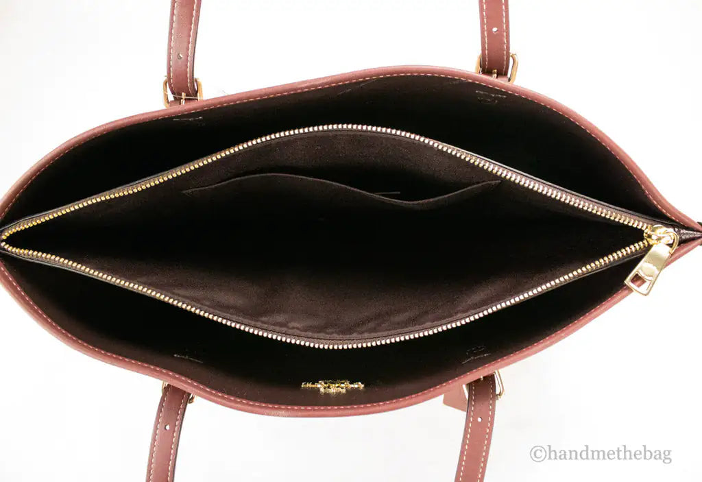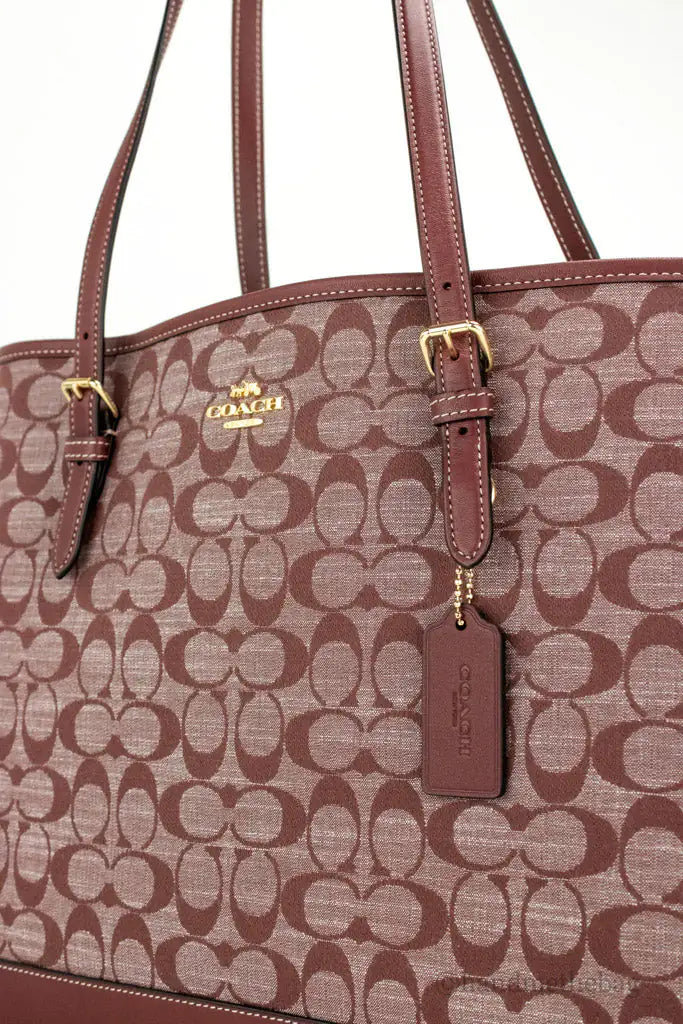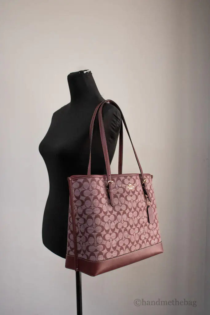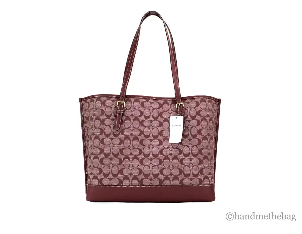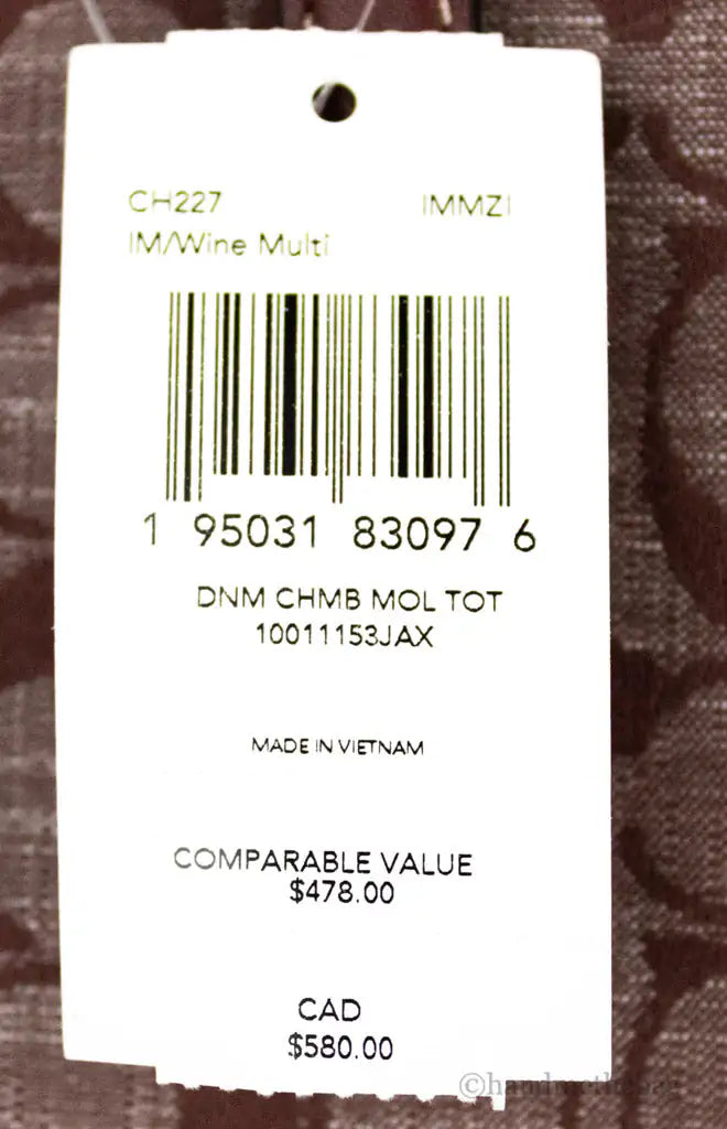 Coach Mollie Wine Signature Denim Chambray Canvas Leather Tote