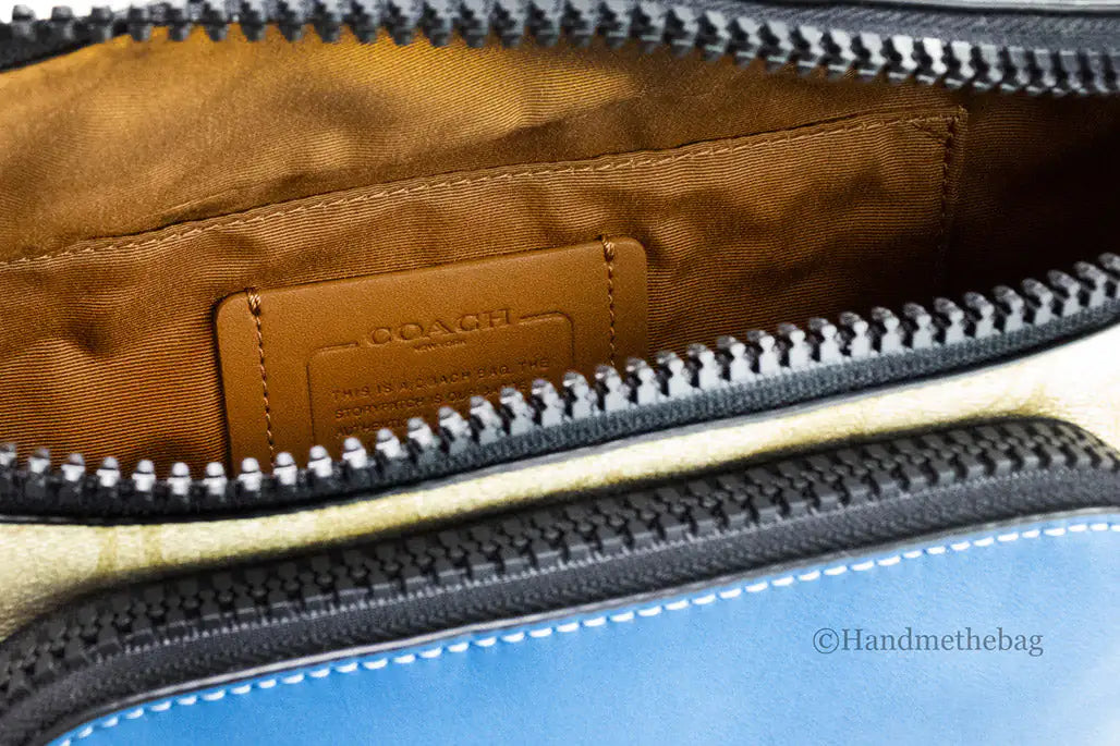 Coach Track Khaki Colorblock Leather Logo Stamp Belt Bag