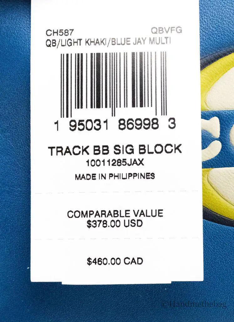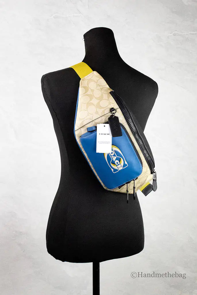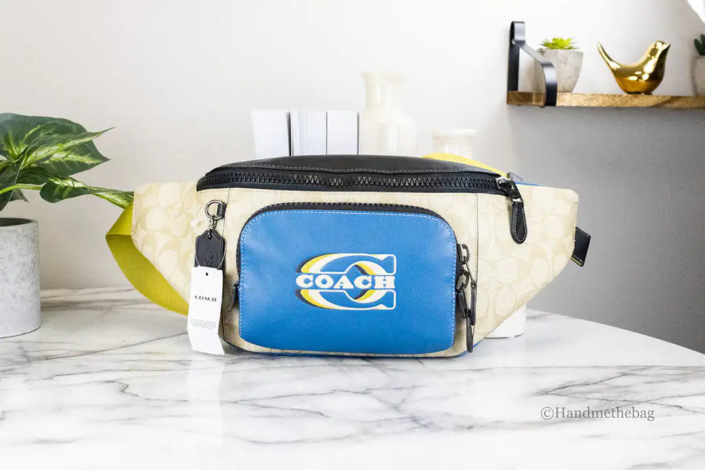Style: Coach (CH587) Track Khaki Colorblock Coated Canvas Leather Logo Stamp Belt Bag