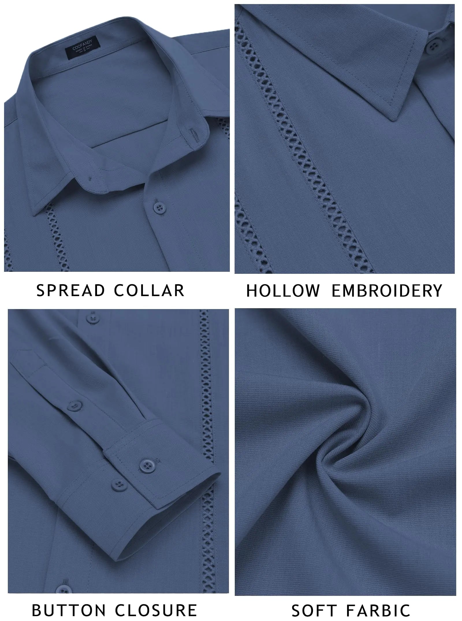 COOFANDY Mens Cuban Guayabera Shirt Casual Button Down Shirts Long Sleeve Summer Beach Shirts