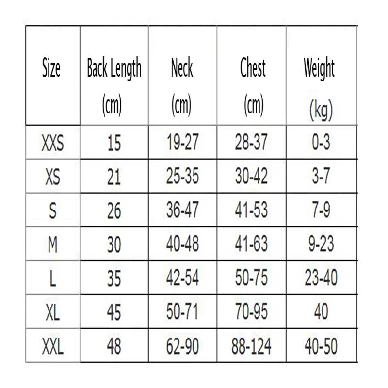 Please note: While we strive for precision, there may be a slight measurement error of 2-5cm, ensuring a perfect fit for dogs of all shapes and sizes.