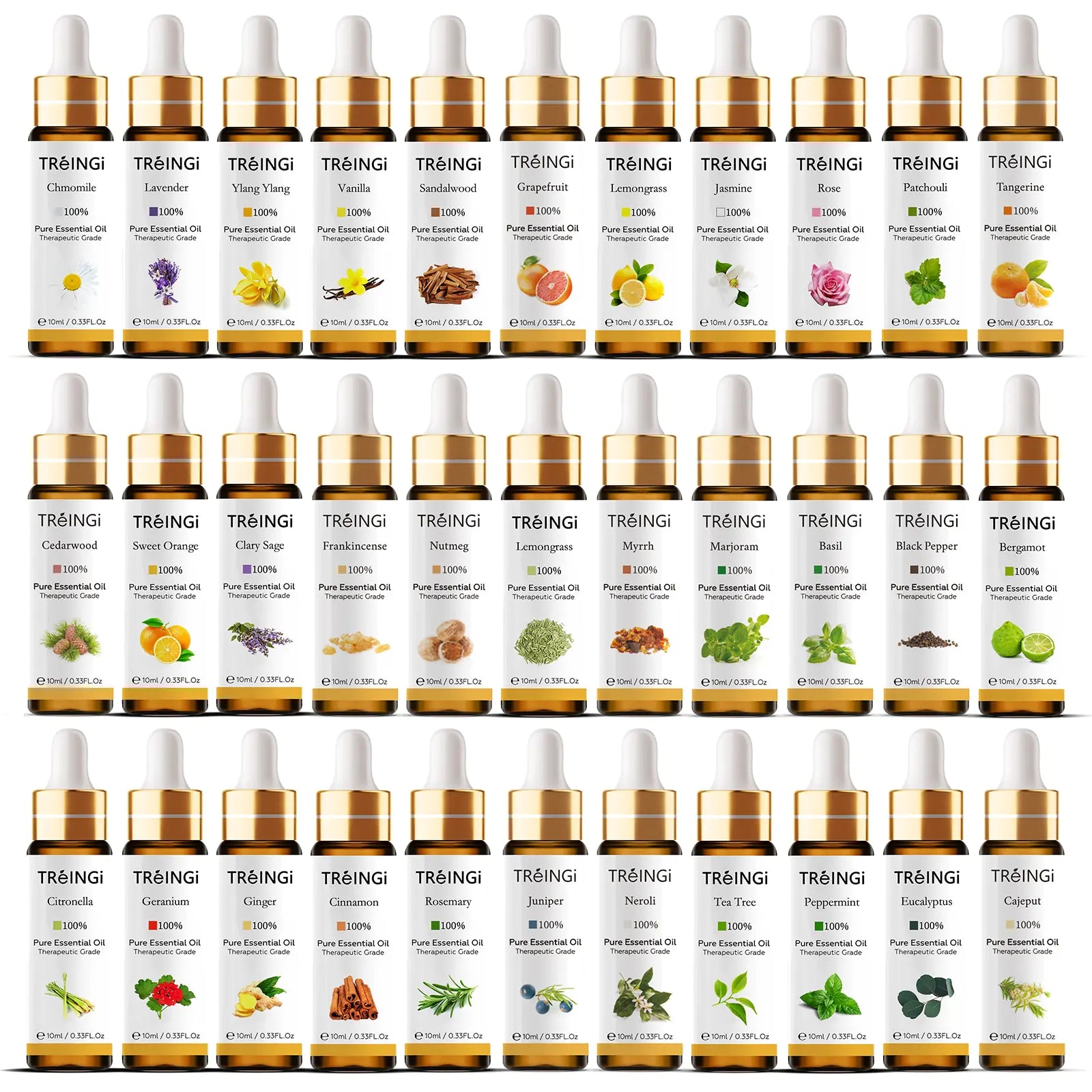 Unleash the potential of Essential Aromatherapy Oils and immerse yourself in a world of holistic wellness! Our meticulously crafted set of 10ml Pure Natural oils – including Sandalwood, Jasmine, Lavender, Rose, Vanilla, Mint, Sage, Cinnamon, Bergamot, and Tea Tree – is your passport to tranquility and rejuvenation.