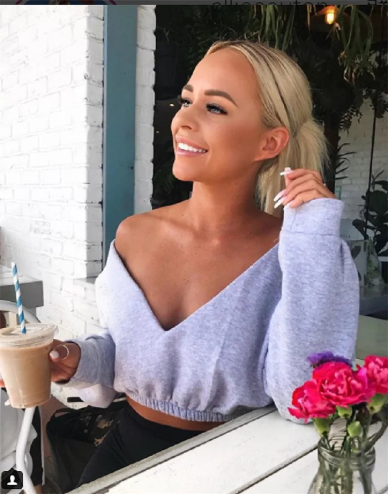 Fashionable Autumn Women's Crop Hoodies: Deep-V Neck, Off Shoulder