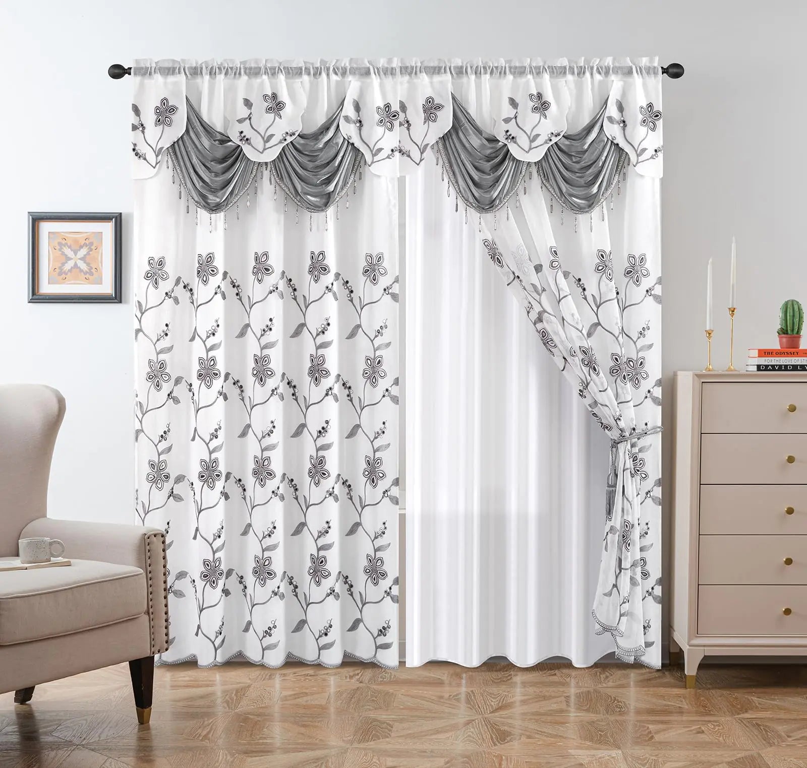[- Seasonal Color Palette & Material: Adorn your windows with curtains crafted for the warm seasons. The light breathable material paired with a cheerful color selection echoes the vibrancy of spring and summer making your interiors feel bright and breezy all year round. "- Shimmering Decorative Beads: Dappled sunlight through the decorative beads creates a kaleidoscope of reflections bringing a dynamic sparkle to your room. These exquisite details catch the eye adding a layer of richness and depth that enhances the curtains sheer elegance." - Luxury Embellished Valance: The attached valance crowns your windows with a lavish touch. Its sumptuous folds and graceful draping are the epitome of luxury decor turning each glance towards your windows into an appreciation of fine craftsmanship. - Elevate with Elegance: Transform any space with these exquisite curtains that promise to add a touch of grandeur to your living room or dining area. The embroidery detail flourishing with a life-like vibrancy enriches your home with a flourish of natural beauty. - Effortless Installation & Care: The curtain set is designed for ease. The fabric’s durable quality ensures it remains a lasting addition to your decor easy to care for and maintain its lustrous appearance.]