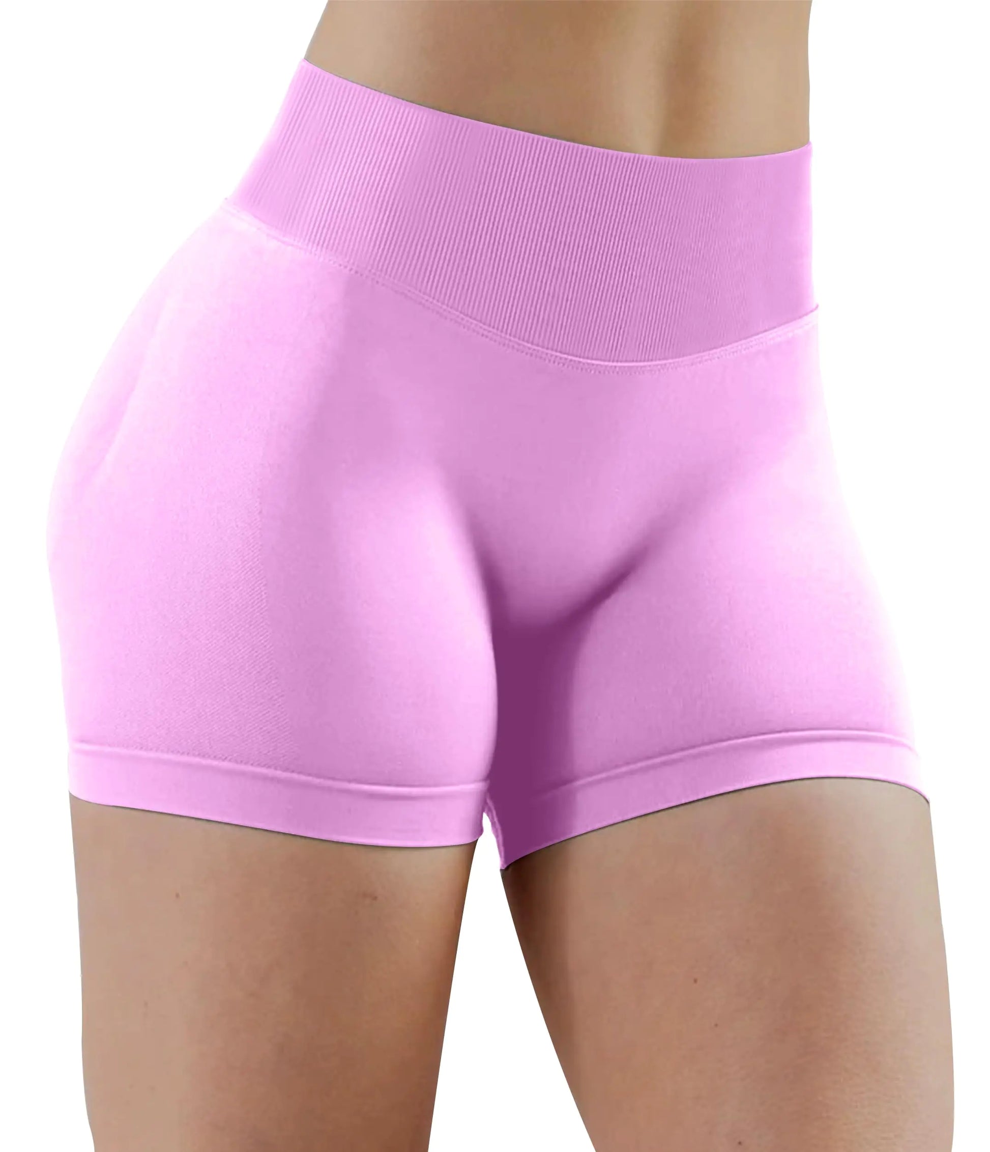 Unthewe Womens Workout Seamless Scrunch Butt Lifting Shorts High Waisted Tummy Control Gym Yoga Shorts #2 Baby Pink Small