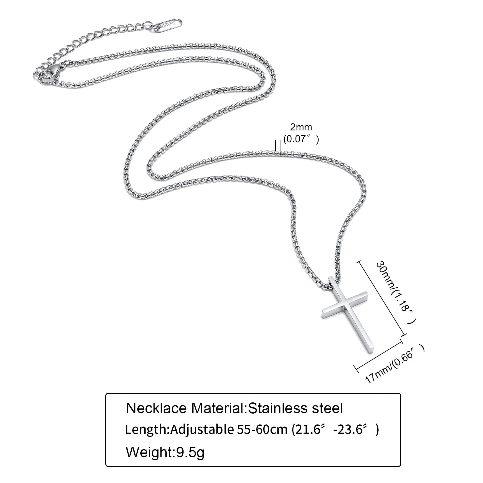 Introducing our Vnox Mens Cross Necklaces, a perfect blend of simplicity and style. Crafted from durable stainless steel, these necklaces feature a layered plain cross pendant, adding a touch of elegance to your look. The necklace comes with a rope box chain that complements the pendant beautifully. The combination of the cross pendant and the chain creates a simple yet impactful design that can be worn for various occasions. Whether it's a casual outing or a formal event, this necklace is a versatile accessory that suits any style.
